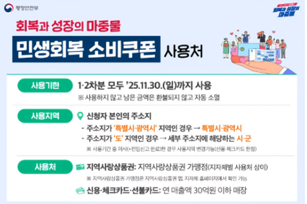 2025년 민생회복 소비쿠폰은 “국민 모두의 손에 따뜻한 지원을”이라는 정책 정신을 잘 담고 있으며, 정부와 국민 간 신뢰 회복의 계기가 되길 기대해본다.